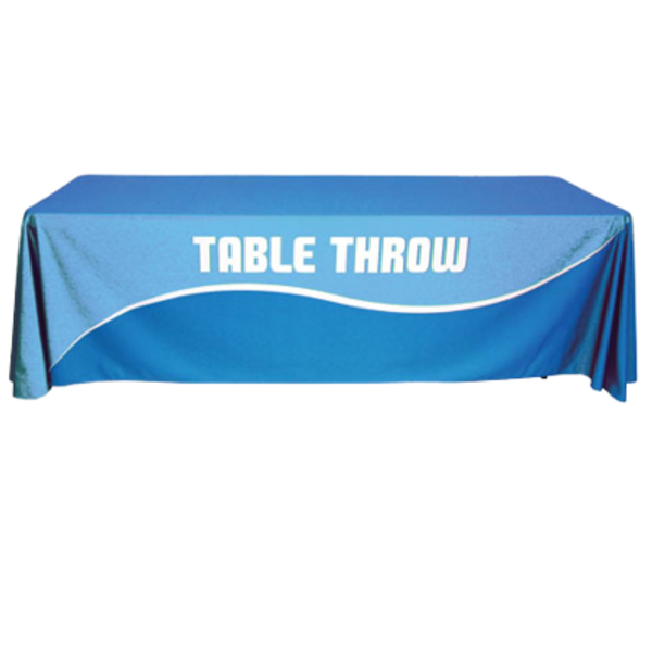 Our Table Cloths and Table Throws will add a professional look to any table display, trade show booth, or special event. They are wrinkle resistant and printed using a dye sublimation process on a 9 oz. Premium Polyester.